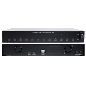 The 12-Port USB 2.0 Type C Hi -Power Hi-Power Charing Hub is a solution for quick charging or sync up to 12 USB Type C devices. This is a perfect tool to effectively save energy and cool down the unit unit’s heat. Also is ideal for large capacity USB station in-house that enables charging and syncing at a time; automatically recharging once the devices connected have consumed their power with remaining 90% (approximately) after fully charged. Places such as school’ s classroom , businesses conference or meeting in organizations. -